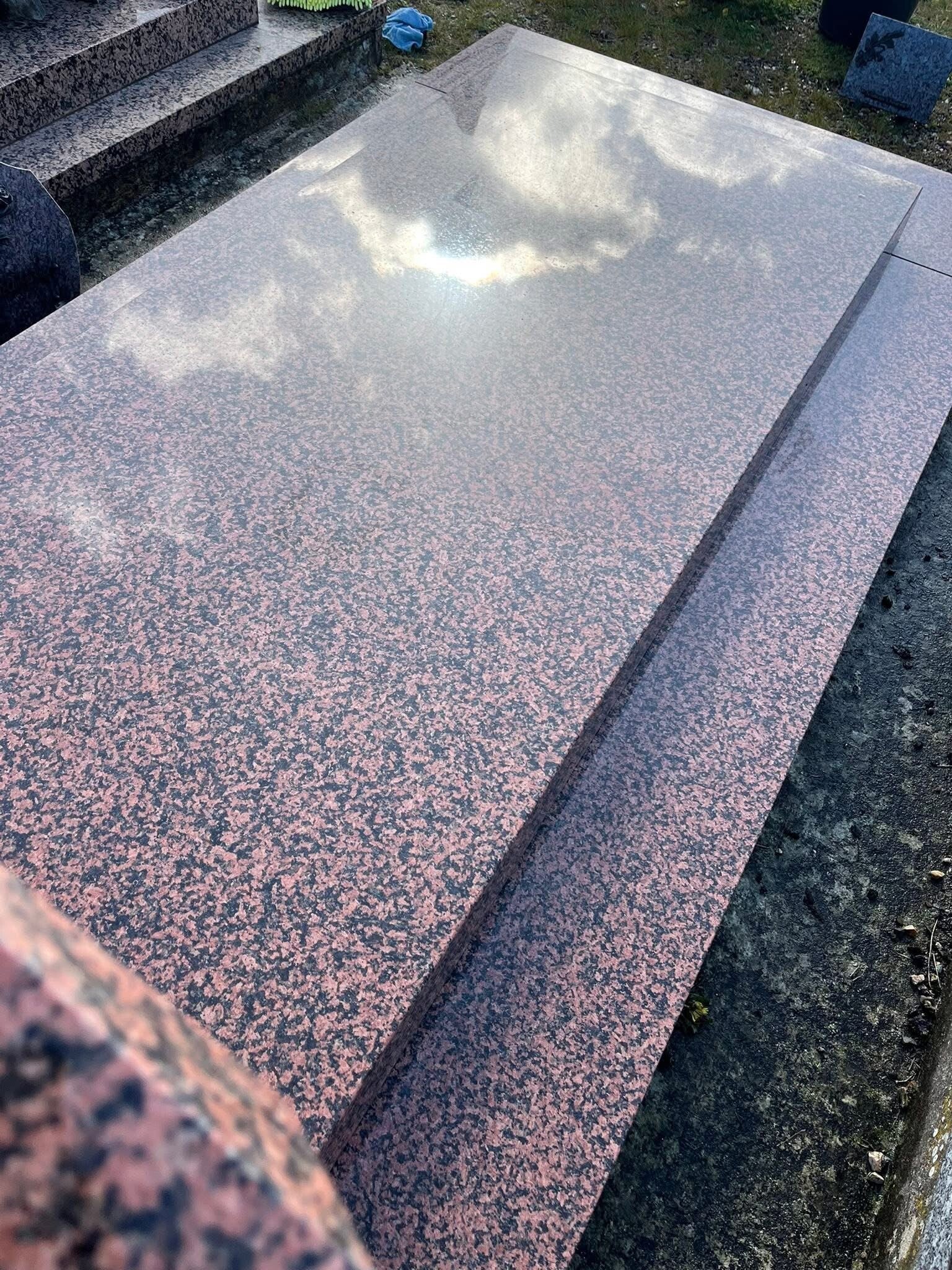 Nous proposons un nettoyage doux pour éliminer les salissures courantes et redonner de l'éclat à la pierre tombale.